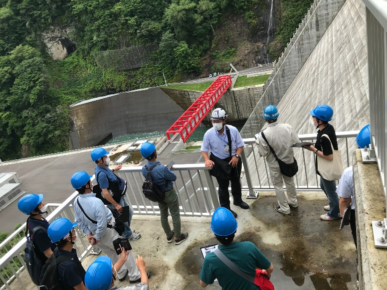 講座2日目は、フーチング階段を下りながらダムを真横から見てダムの大きさを体感しました。