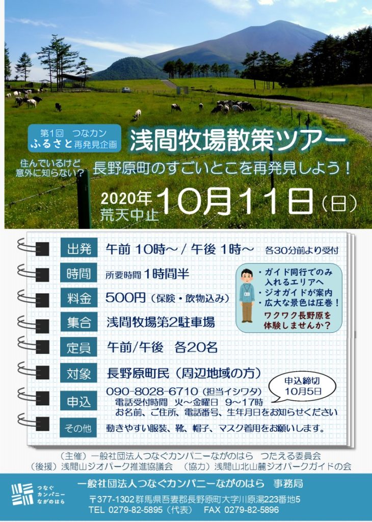 第1回 つなカンふるさと再発見企画「浅間牧場散策ツアー」のご案内