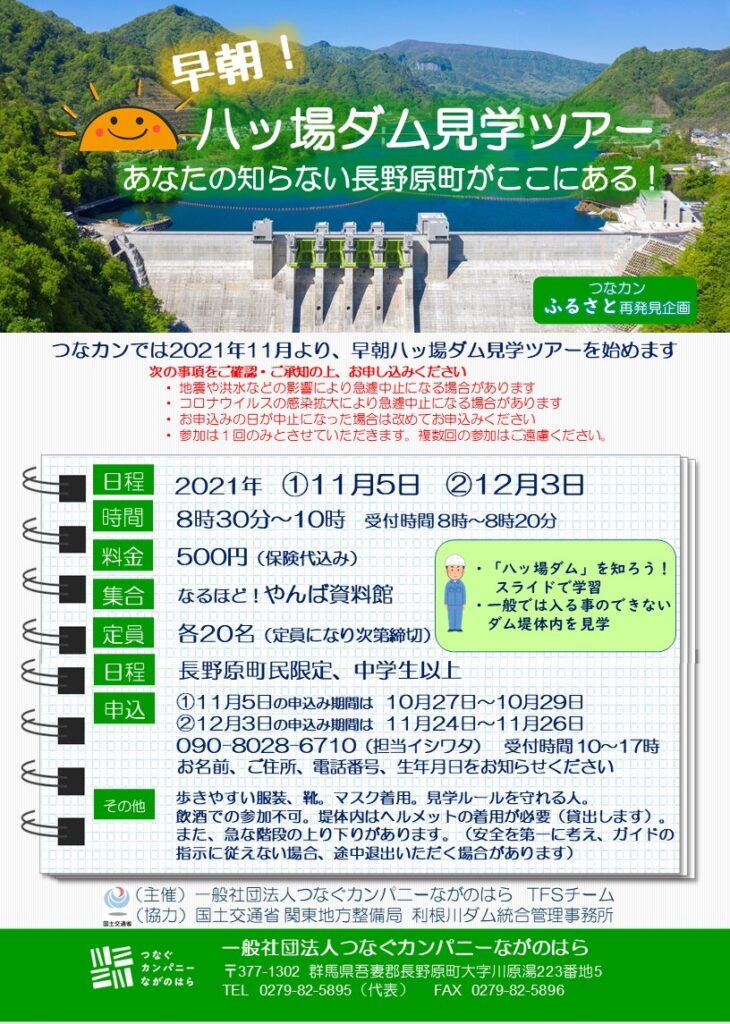 つなカンふるさと再発見企画「早朝!八ッ場ダム見学ツアー《2021年11月、12月》」のご案内