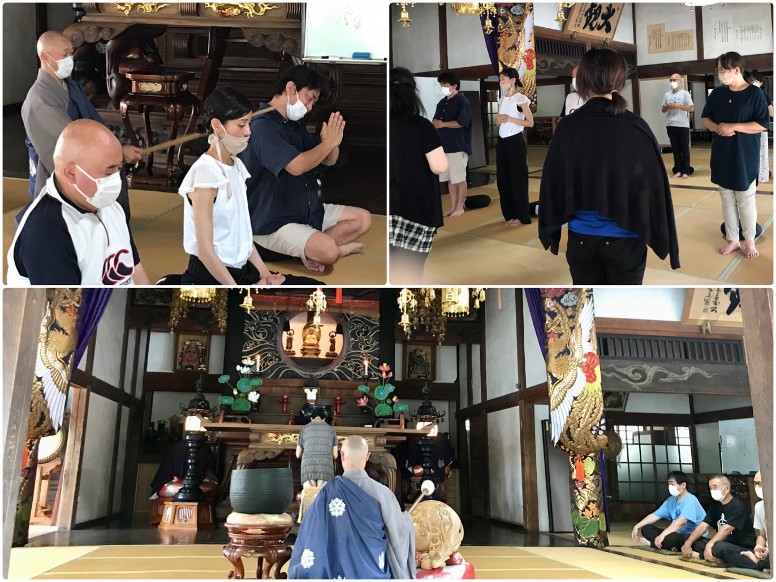 鐘が3つ鳴り、いよいよ坐禅開始です。風の音、鳥、蝉の声だけが聞こえる静寂の中、時が過ぎていきます。皆さん「無」になっているのでしょうか?実は坐禅中は「無」にならなくてもよいそうで、頭に浮かぶものを次から次へと流していっていいのだとか。