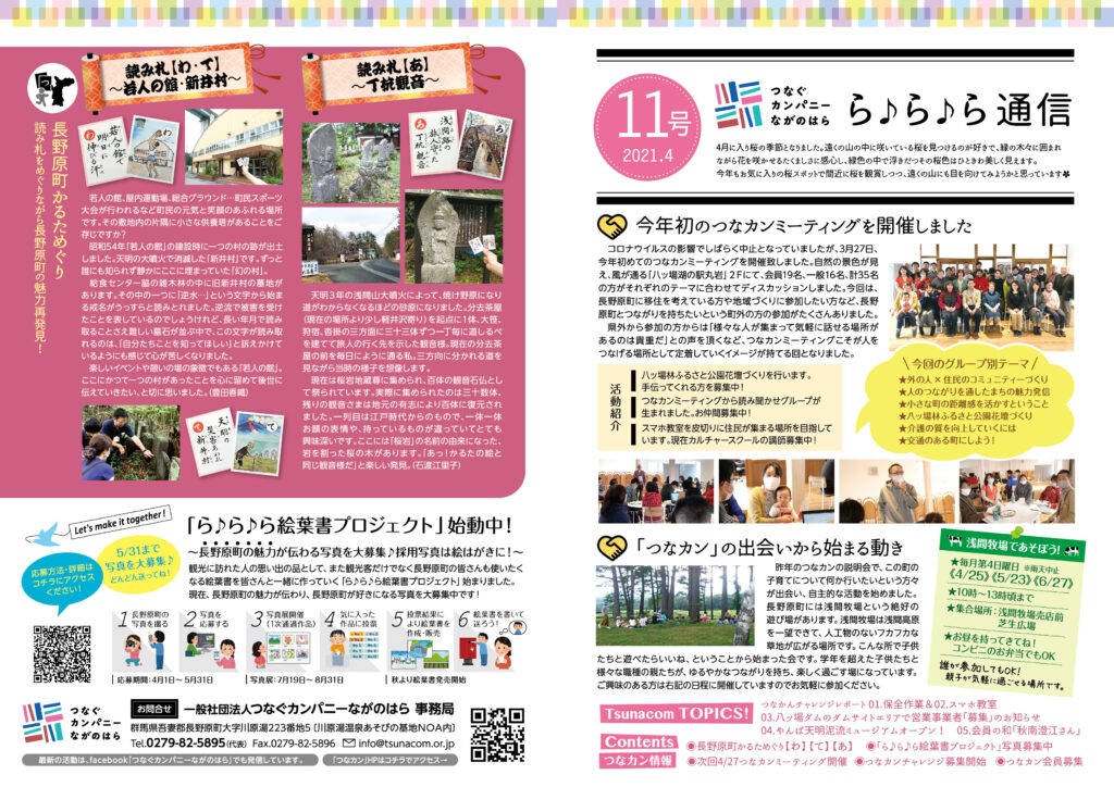 「つなカン」から皆さまへ、「つなカン」の活動や、町の魅力を「つなカン」目線でお届けする刊行物「ら♪ら♪ら通信」。第11号を4月13日より町内全戸配布しています。