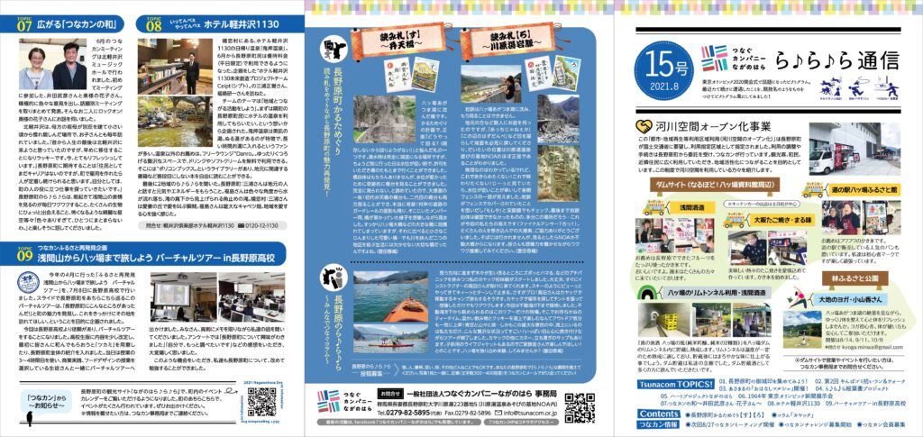 「つなカン」から皆さまへ、「つなカン」の活動や、町の魅力を「つなカン」目線でお届けする刊行物「ら♪ら♪ら通信」。第15号を8月10日より町内全戸配布しています。