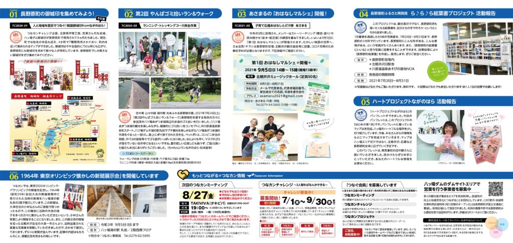 つなカンチャレンジ「人と地域を歴史でつなぐ〝戦国御城印from長野原〟」「ランニング・トレッキングコース保全作業」「子育て応援おはなしとどけ隊 ’あさまる’」の活動報告。