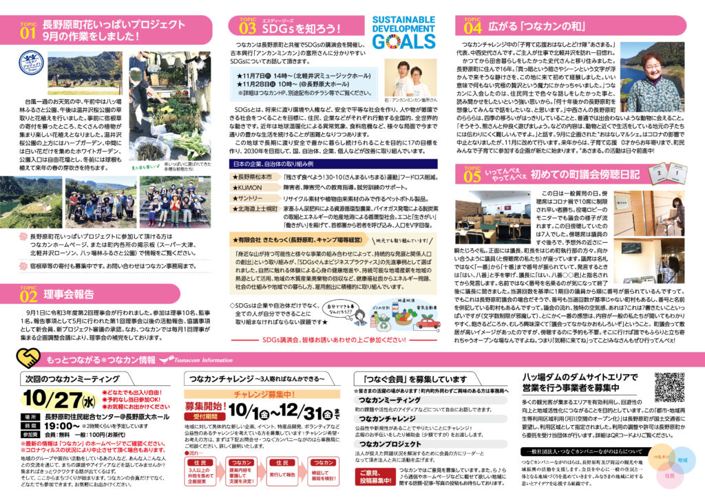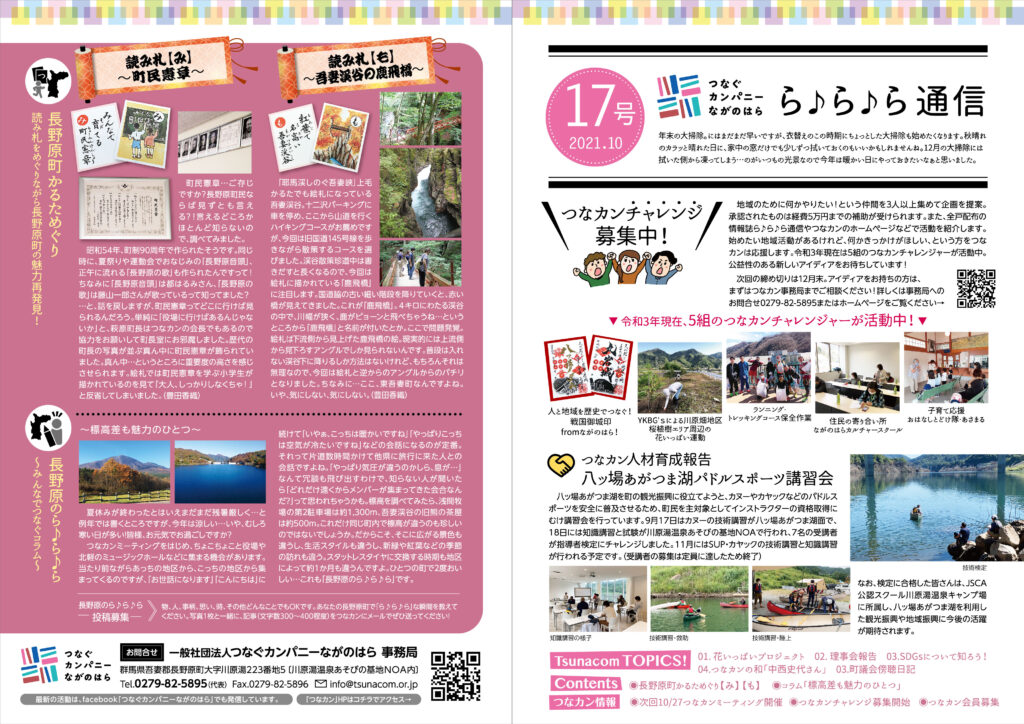 「つなカン」から皆さまへ、「つなカン」の活動や、町の魅力を「つなカン」目線でお届けする刊行物「ら♪ら♪ら通信」。第17号を10月12日より町内全戸配布しています。
