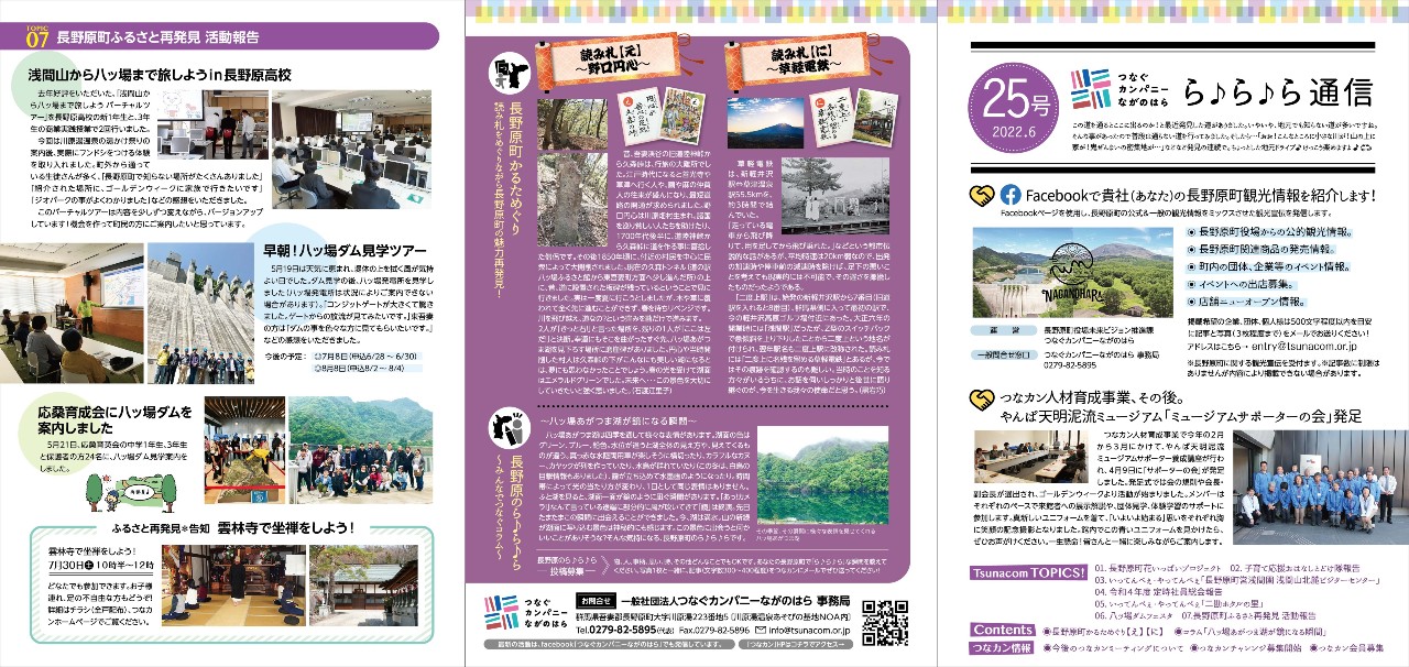 「つなカン」から皆さまへ、「つなカン」の活動や、町の魅力を「つなカン」目線でお届けする刊行物「ら♪ら♪ら通信」。第25号を6月14日より町内全戸配布しています。