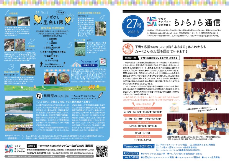 「つなカン」から皆さまへ、「つなカン」の活動や、町の魅力を「つなカン」目線でお届けする刊行物「ら♪ら♪ら通信」。第27号を8月9日より町内全戸配布しています。