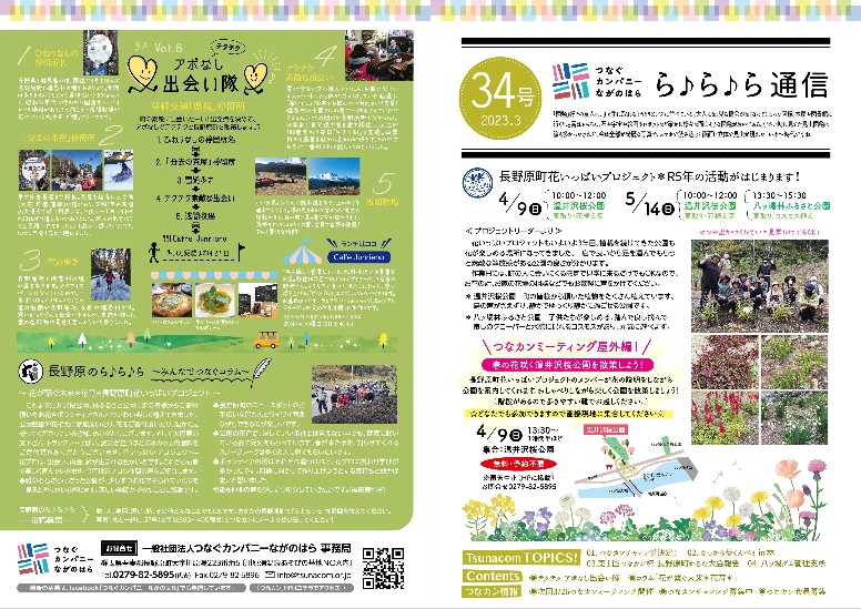 「つなカン」から皆さまへ、「つなカン」の活動や、町の魅力を「つなカン」目線でお届けする刊行物「ら♪ら♪ら通信」。第34号を3月14日より町内全戸配布しています。