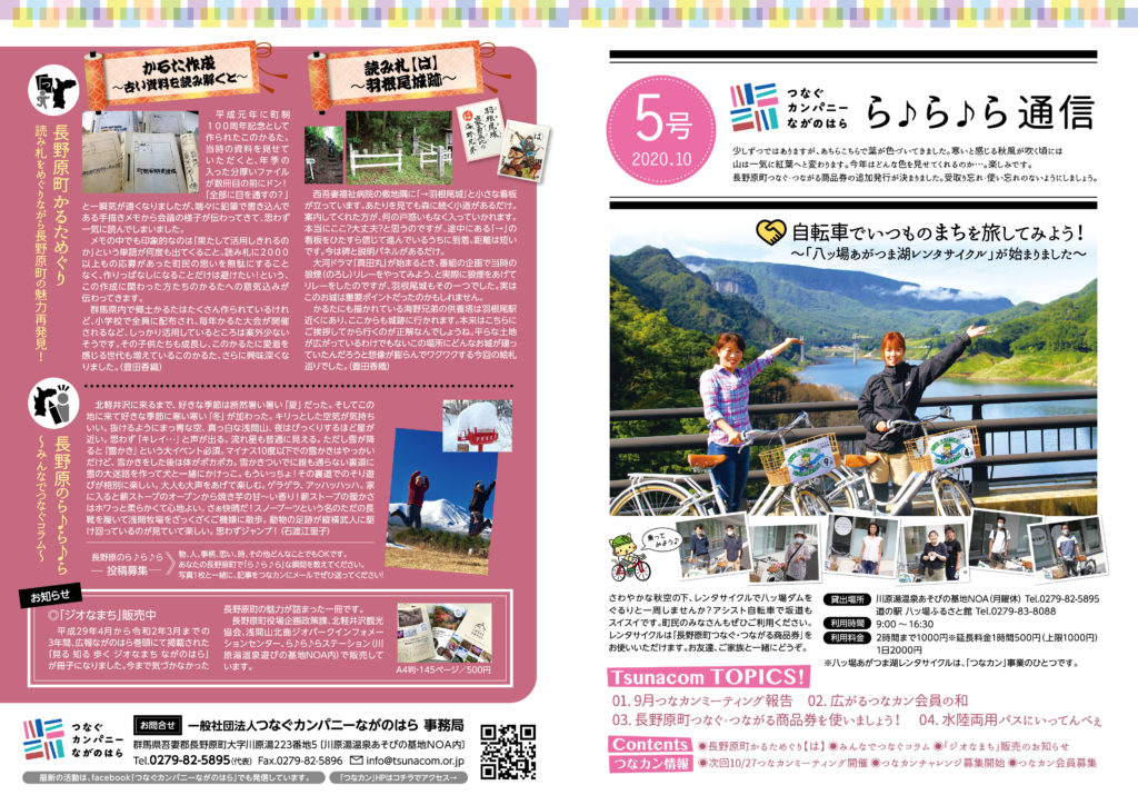 「つなカン」から皆さまへ、「つなカン」の活動や、町の魅力を「つなカン」目線でお届けする刊行物「ら♪ら♪ら通信」。第5号を10月6日より町内全戸配布しています。