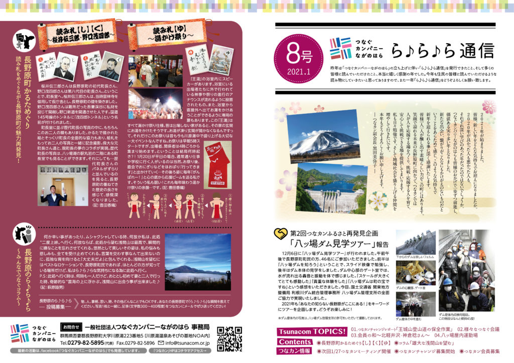 「つなカン」から皆さまへ、「つなカン」の活動や、町の魅力を「つなカン」目線でお届けする刊行物「ら♪ら♪ら通信」。第8号を1月12日より町内全戸配布しています。