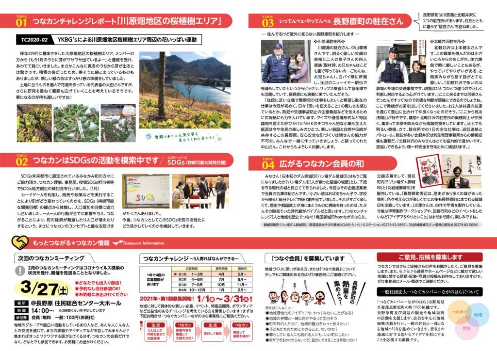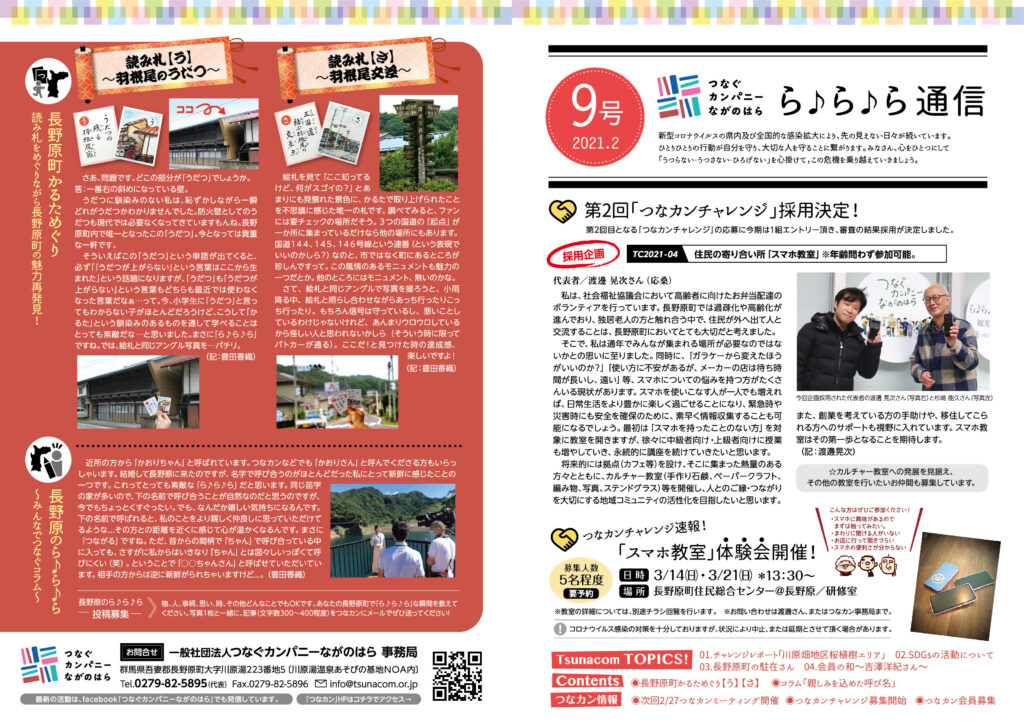 「つなカン」から皆さまへ、「つなカン」の活動や、町の魅力を「つなカン」目線でお届けする刊行物「ら♪ら♪ら通信」。第9号を2月9日より町内全戸配布しています。