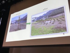 これから植える花の種類を考える場面では、長野原町の気候に合う花、色別に花壇を作る場合などに合わせて、「うばゆり」「ラベンダー」「アピオス」など、アイデアがたくさん出ました。