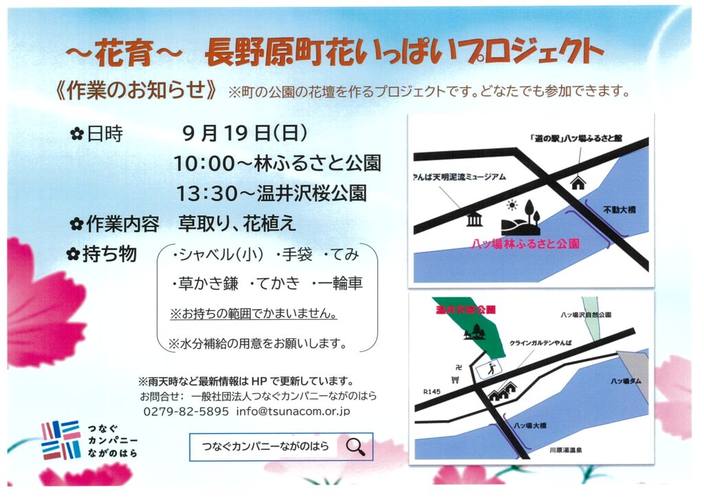 ☆次回は9月に八ッ場林ふるさと公園と温井沢桜公園で作業を行います。作業にはたくさんの方のご協力が必要です。自由参加ですので、皆さんの参加をお待ちしております!