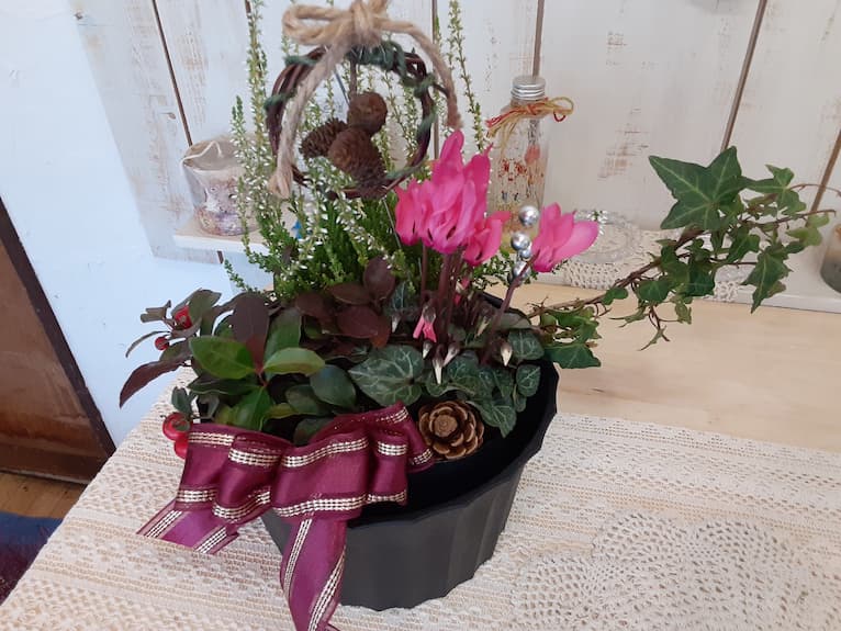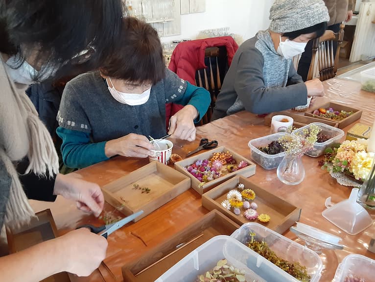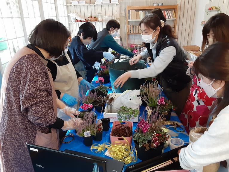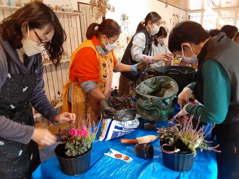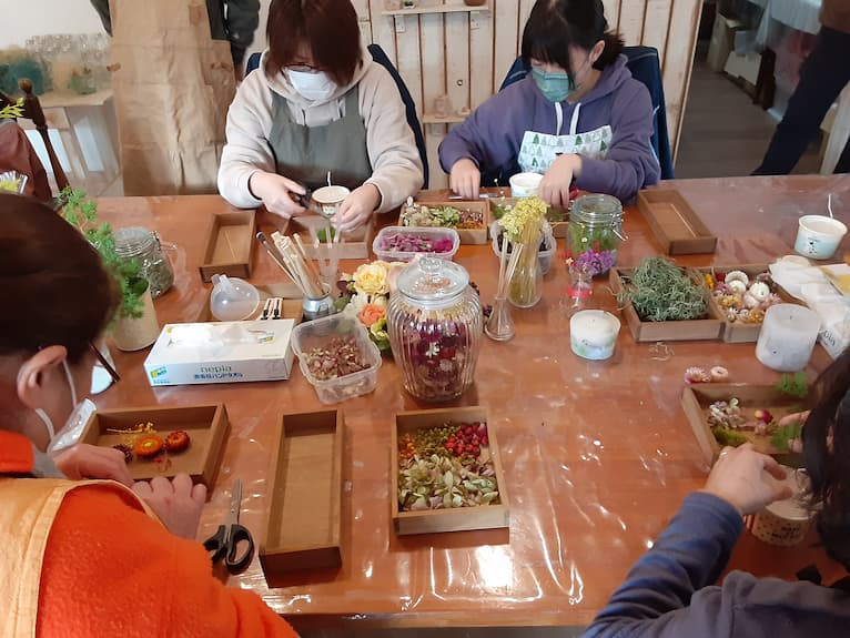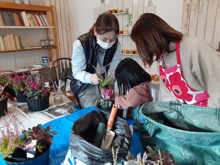 12月4日に、長野原町花いっぱいプロジェクトの作業に参加してくださっている方や、そのお友達、ご家族などと一緒に寄せ植え&キャンドル製作の講習会を行いました。