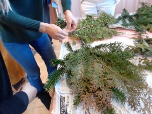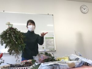 長野原町花いっぱいプロジェクトのボランティア作業に参加されている方を中心にクリスマススワッグの講習会を行いました。