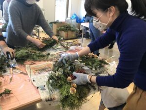 できたスワッグは皆個性的で、それぞれのお家の玄関が賑やかになりそうです。来年もまた新しいメンバーも迎つつ楽しい花いっぱいプロジェクトにしたいと思います。