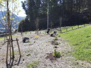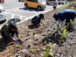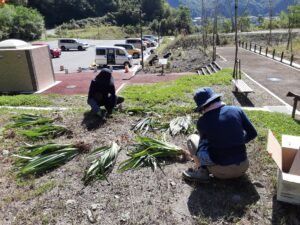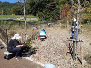 秋晴れの天気の中、10月3日に温井沢桜公園で花植えを行いました。