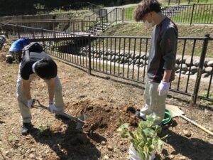 今回も各家庭から持ち寄った宿根草などで集合場所が賑わい、各担当に分かれてその植物を植えました。
