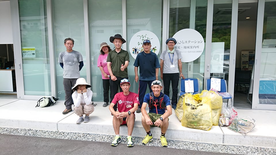 空の青 山々の緑 湖の碧 光あふれる⾧野原の夏。2021年7月24日(土)「第2回やんばゴミ拾いラン&ウォーク」⾧野原町を愛する有志の方々に参加頂き八ツ場あがつま湖周辺の歩道のゴミ拾いを行いました。