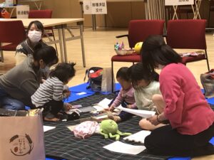 ・0歳~3歳の子ども達と親御さんは交流の場所がない。手遊びやわらべ歌を行い、お子さんや親御さん同士のコミュニケーションの場所を作りたい。
