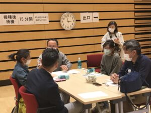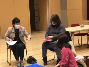 3月のつなカンミーティングはグループ別で子育てについて語りました。つなカンチャレンジで活動中の「子育て応援おはなしとどけ隊 あさまる」による読み聞かせもあり、子供たちも傍らで遊ぶ、和やかなミーティングとなりました。