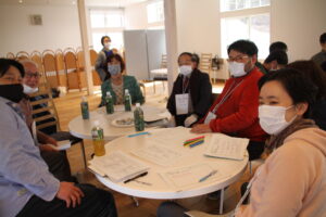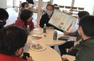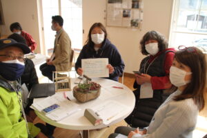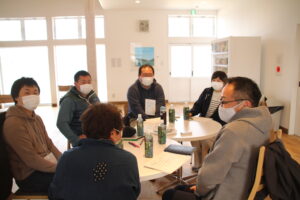 コロナウイルスの影響でしばらく中止となっていましたが、3月27日、今年初めてのつなカンミーティングを開催致しました。自然の景色が見え、風が通る「八ッ場湖の駅丸岩」2Fにて、会員19名、一般16名、計36名の方がそれぞれのテーマに合わせてディスカッションしました。